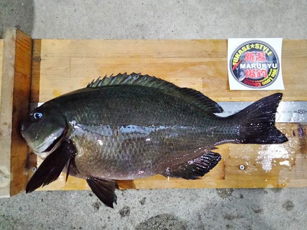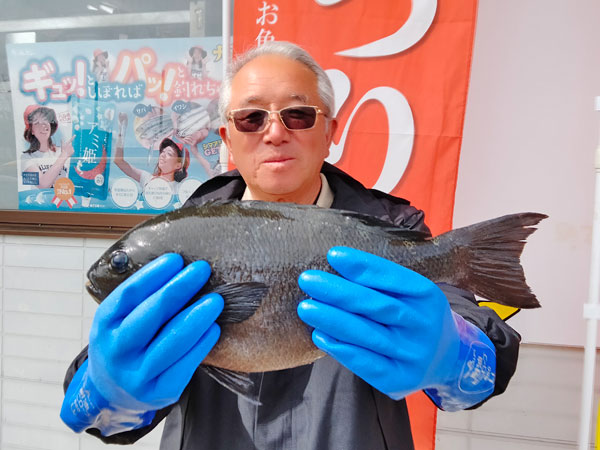 このサイズのメジナは、パワーがものすごいですが、がまかつアテンダーが、いい仕事をしてくれ、なんなく上げられたとのこと。