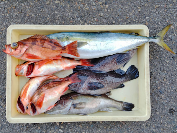 今年お初の出撃。インチクで根魚狙い。7時に出船し、水深30~60mを攻めると、クロソイ、カサゴ、キジハタと、美味しい根魚のオンパレード。さらにブリまでヒット。タイラバのロッドだったので、あまりのパワーに手が笑って仕事にならなかったそう。